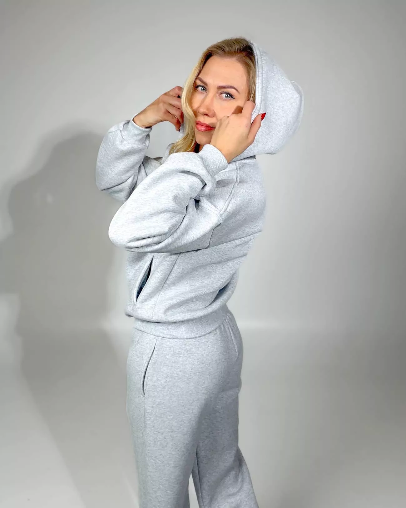 Prie šio džemperio galite įsigyti ir tokios pat spalvos kelnes, lieka tik išsirinkti modelį – žiūrėkite čia.