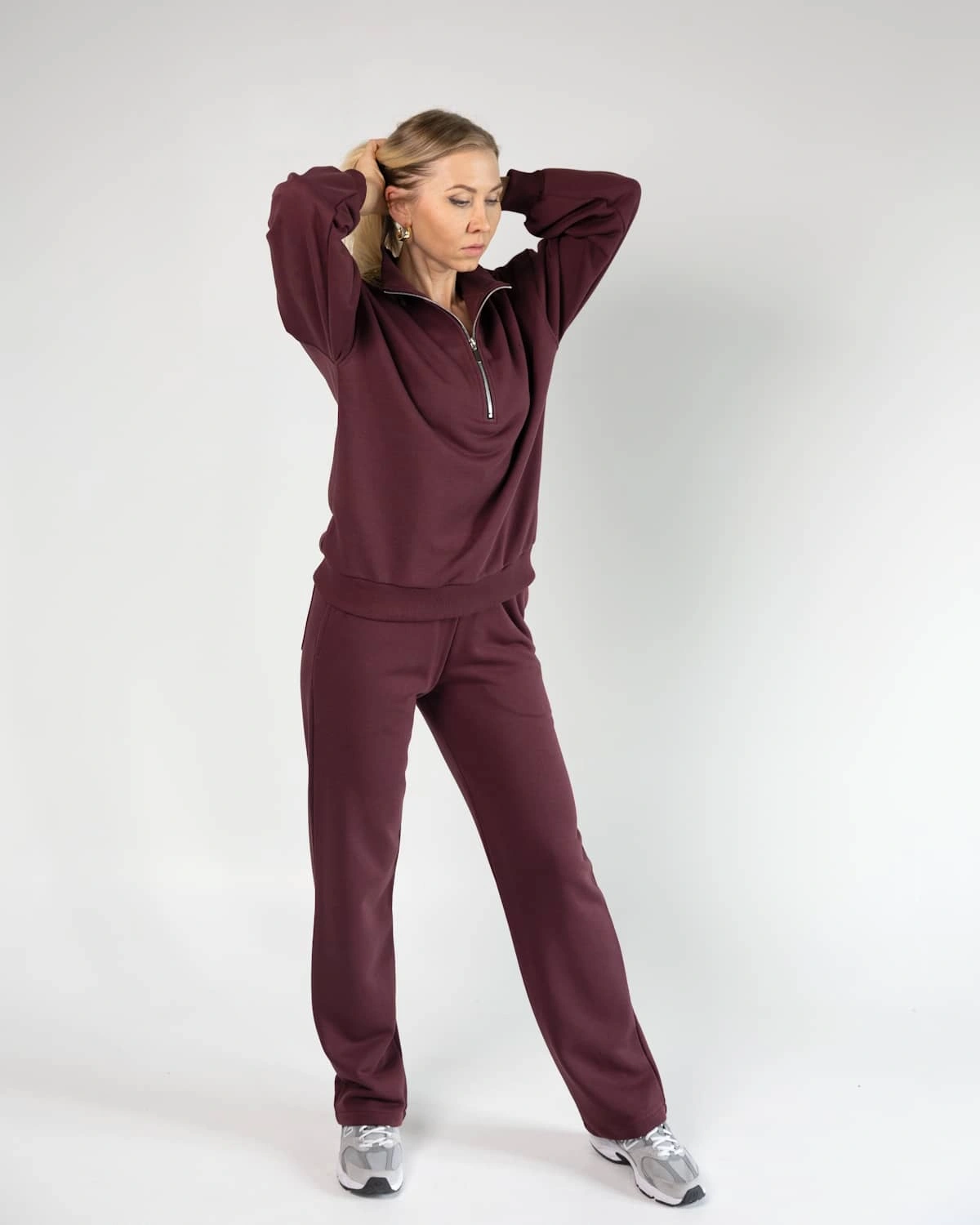 Moteriškas laisvalaikio kostiumas ZIP COLLAR Wine mood