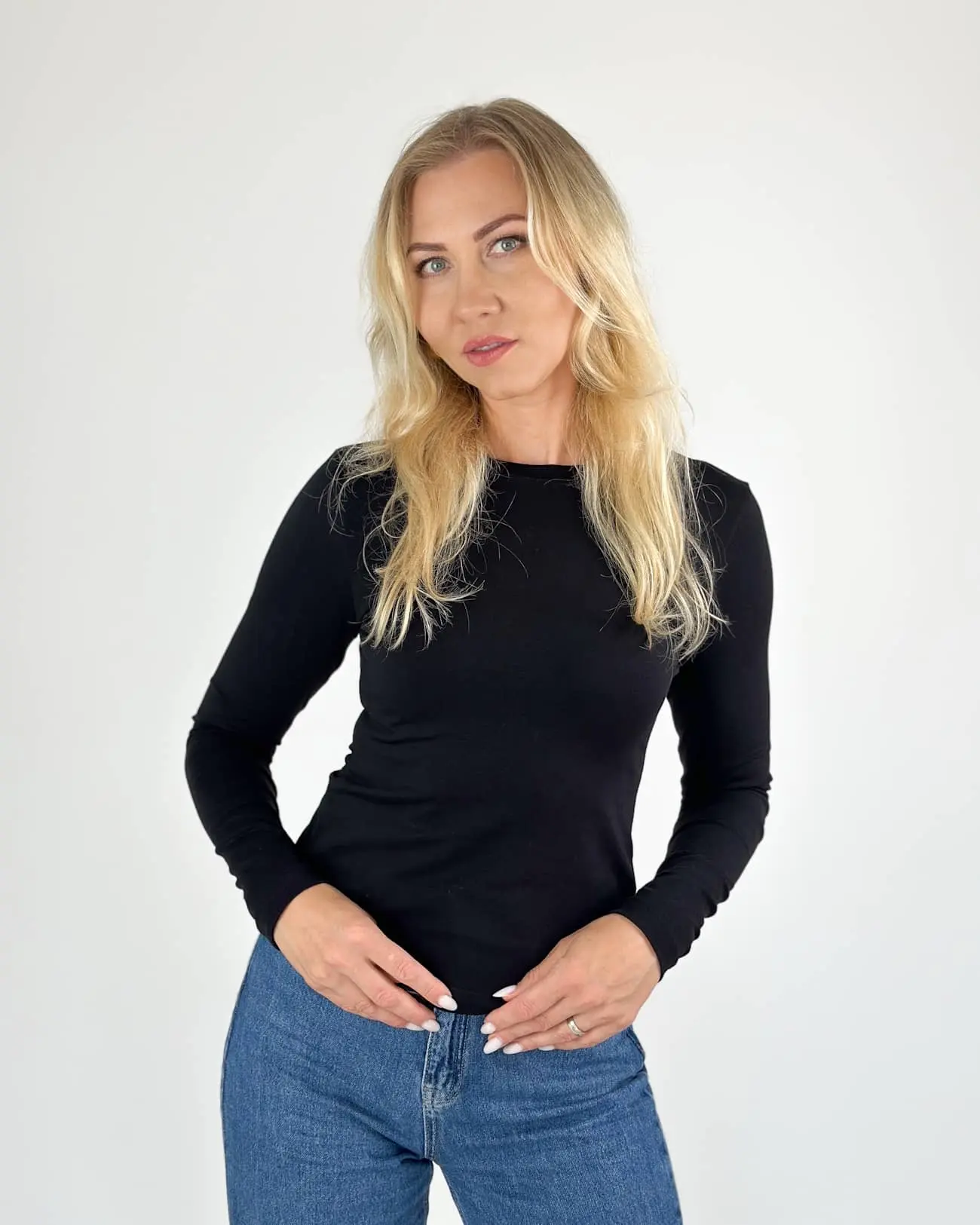 Bazinis rūbas jūsų spintoje – basic tipo marškinėliai ilgomis rankovėmis. Jų visada reikia ir niekad nebus per daug! Prie visko tinka ir lengva derinti. Siūnami iš aukštos kokybės medvilninio džersio trikotažo.